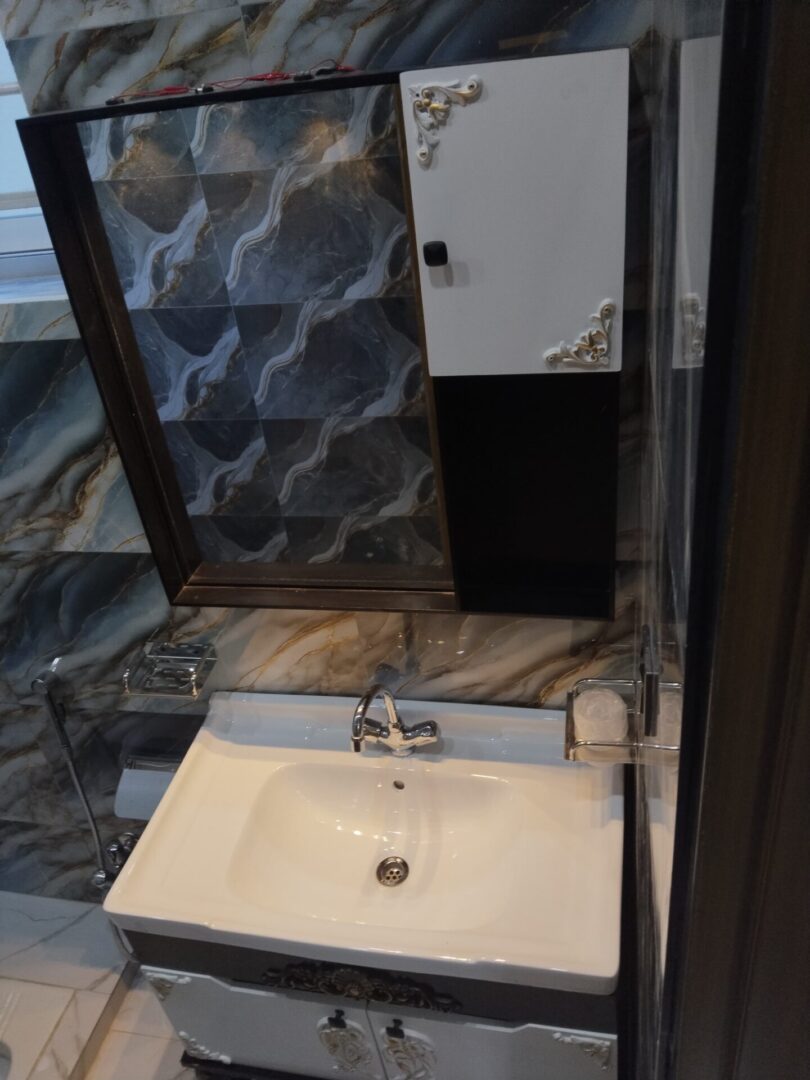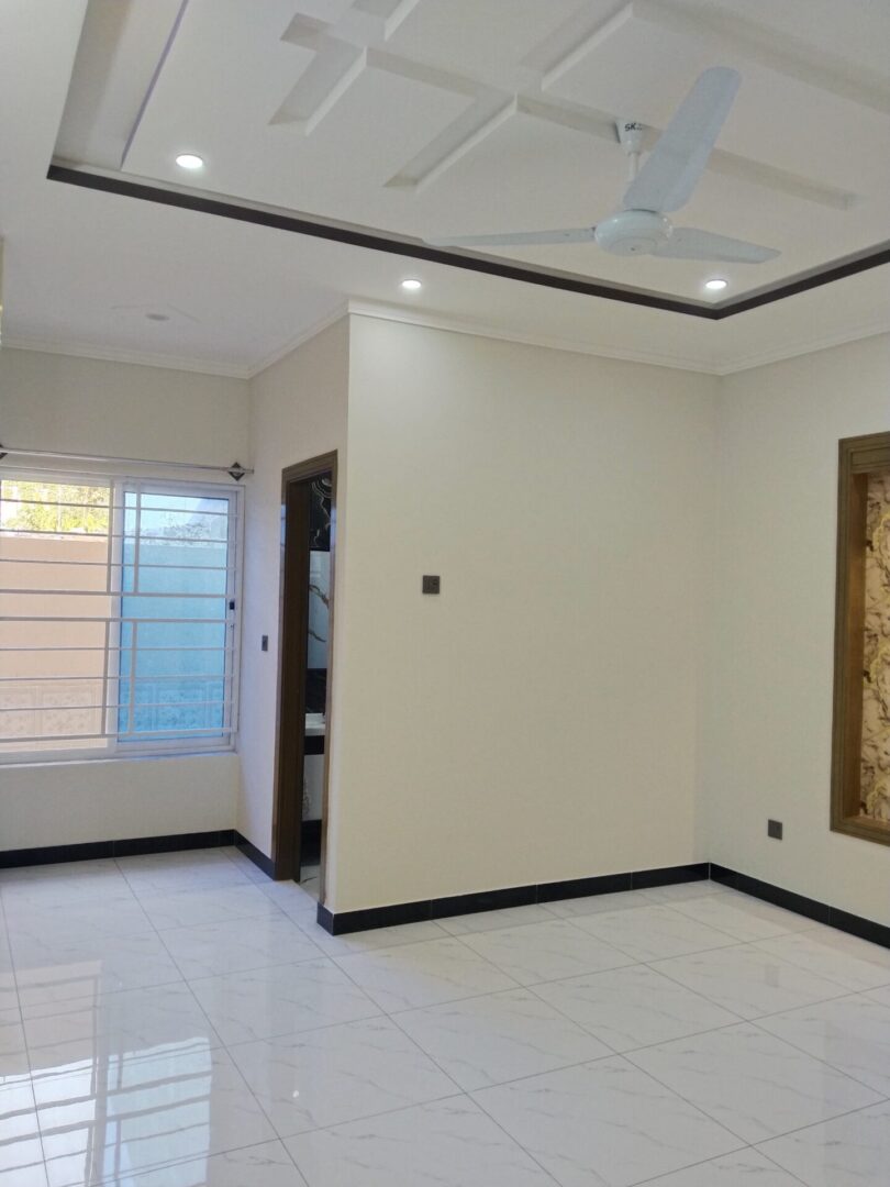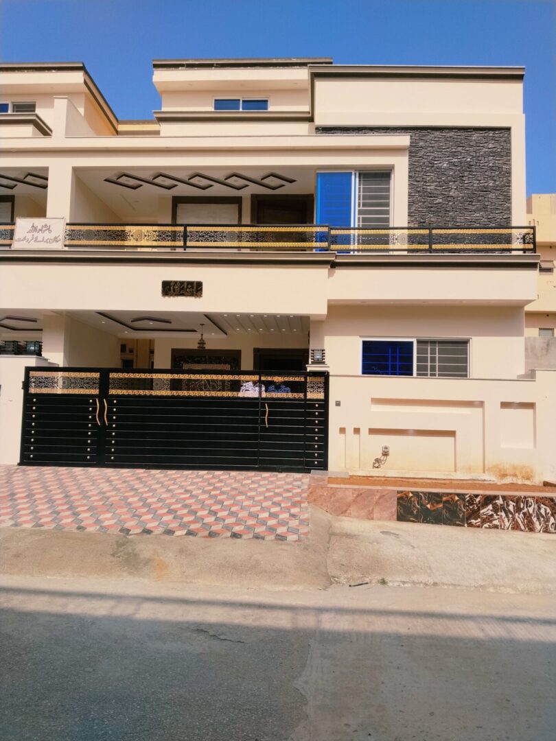 4 bedroom house for sale in Islamabad located in Jinnah Gardens | Phase 1. This property features 4 bedrooms, 4 bathrooms, 2 drawing rooms, 2 kitchens, parking and 2 living rooms. Each bedroom is ensuite, providing privacy and convenience. The house showcases a modern design both inside and out. It boasts marble flooring throughout and large windows that flood the space with natural light. Clean lines, stylish fixtures, unique feature walls, solid wood doors, high-end finishes, and an open, airy feel give the living areas, kitchen, and bedrooms a sleek, contemporary vibe. The house has the potential of being split into 2 separate apartments each with it own designated floor and facilities offering great rental potential and passive income or multiple family living. Situated close to essential amenities, including shops, coffee shops, and restaurants, this property is ideally located.
