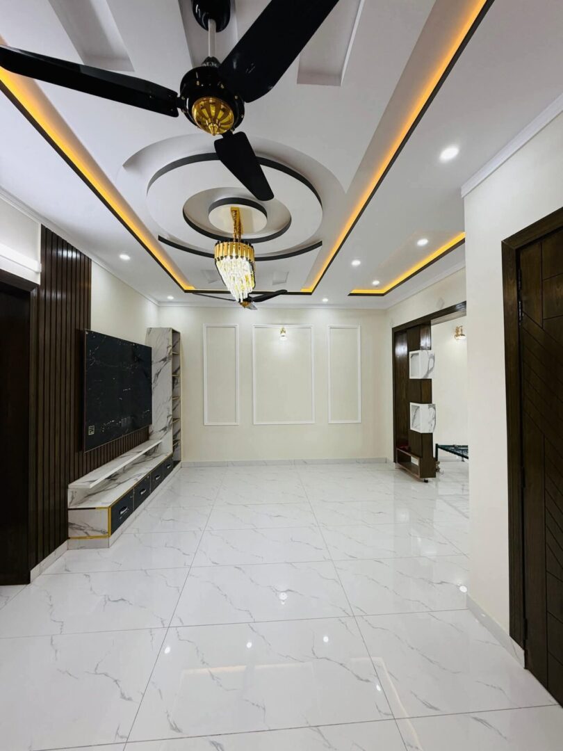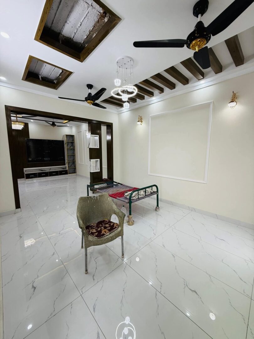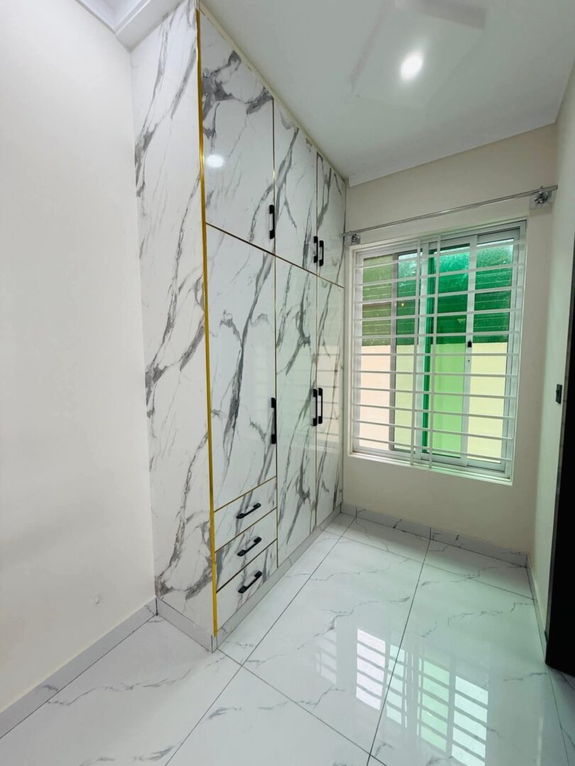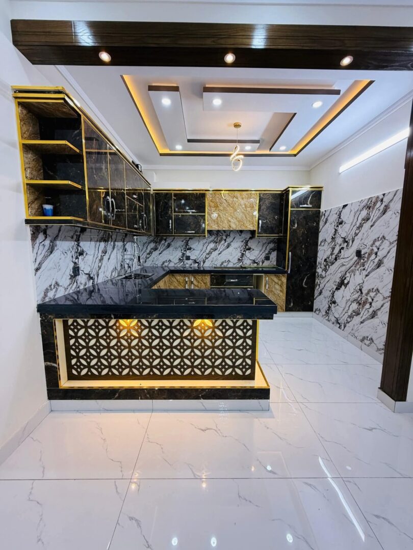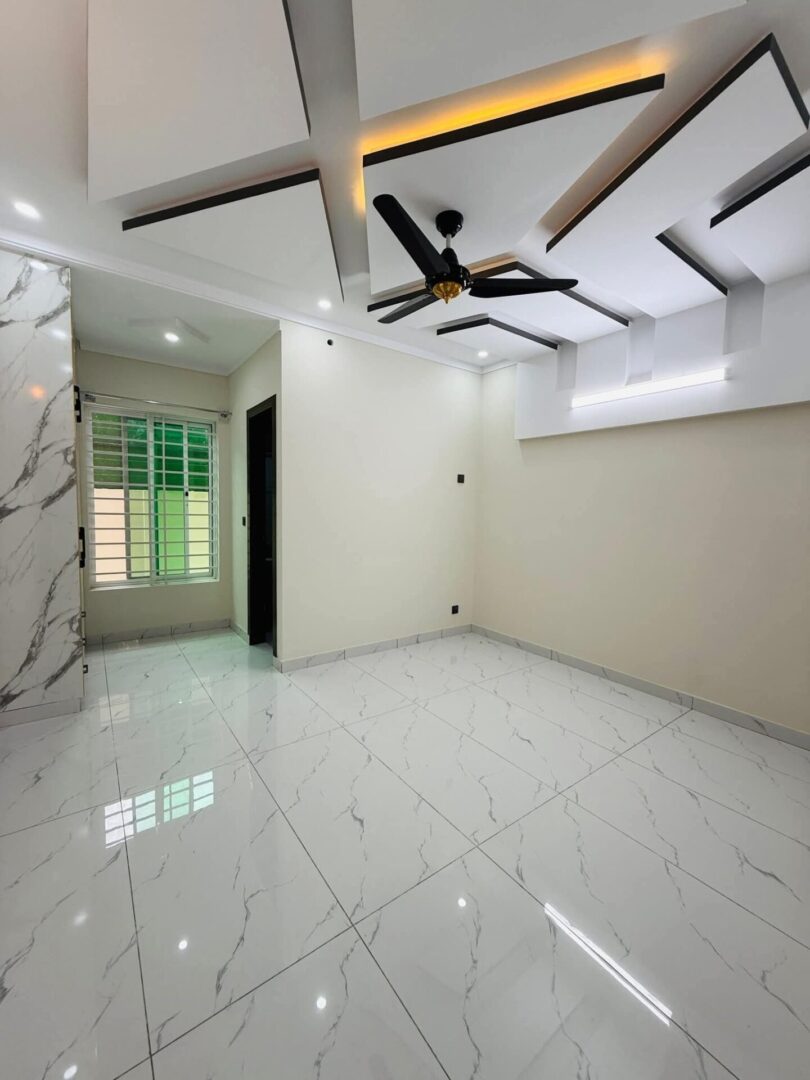 4 bedroom house for sale in Islamabad located in Jinnah Gardens | Phase 1. This property features 4 bedrooms, 4 bathrooms, 2 drawing rooms, 2 kitchens, parking and 2 living rooms. Each bedroom is ensuite, providing privacy and convenience. The interior and exterior of the house has been beautifully designed giving it a modern sleek look. The beautiful residence features marble tiling throughout and large windows that draw in an abundance of natural light. Its clean lines, modern fixtures and fittings, unique feature walls, solid wood doors, premium finishes and the overall spacious ambiance lend a contemporary touch to the living spaces, kitchen, and bedrooms. The house has the potential of being split into 2 separate apartments each with it own designated floor and facilities offering great rental potential and passive income or multiple family living. Situated close to essential amenities, including shops, coffee shops, and restaurants, this property is ideally located.