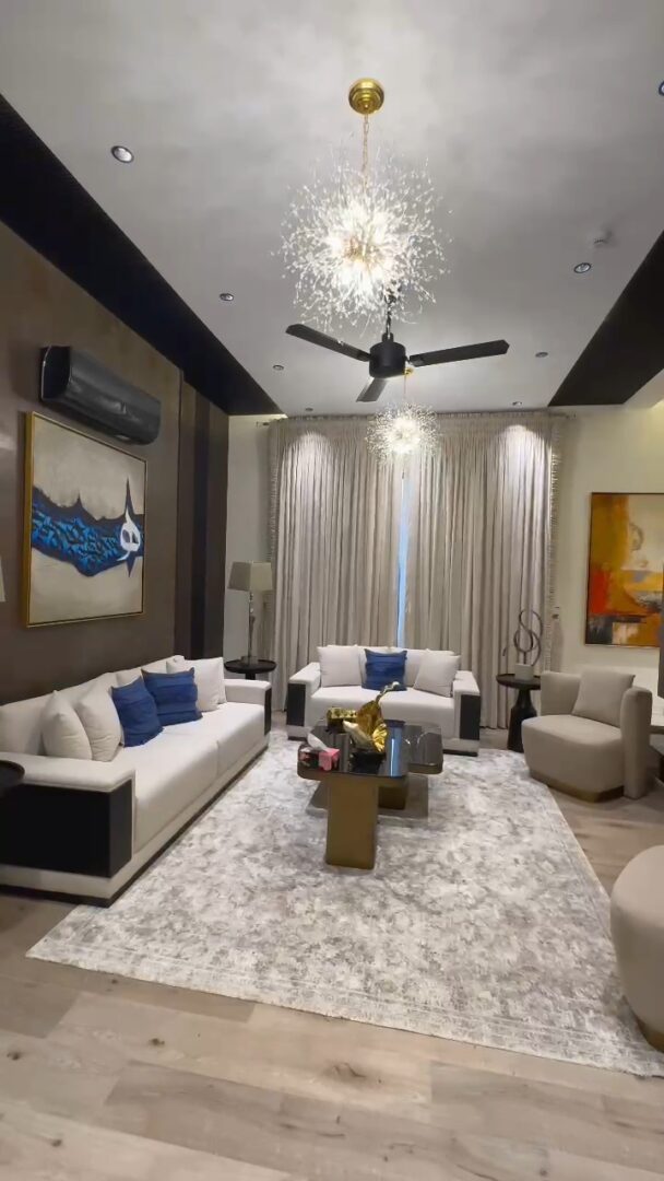 Beautiful furnished 5 bedroom house for sale in Lahore DHA 7. This luxurious property offers generous living space arranged over two floors and benefits from a particularly wide frontage, high ceilings, and excellent proportions, allowing an abundance of natural light throughout. The interiors have been thoughtfully designed with careful attention to detail, combining comfort with contemporary aesthetics. The layout is ideal for both family living and entertaining, comprising 5 bedrooms, 5 bathrooms, 2 TV lounges, multiple lounging areas, 3 kitchens, a powder room, a drawing room, dirty kitchen and balconies. The house has the potential of being split into 2 separate apartments each with it own designated floor and facilities offering great rental potential and passive income or multiple family living making it an ideal investment..
