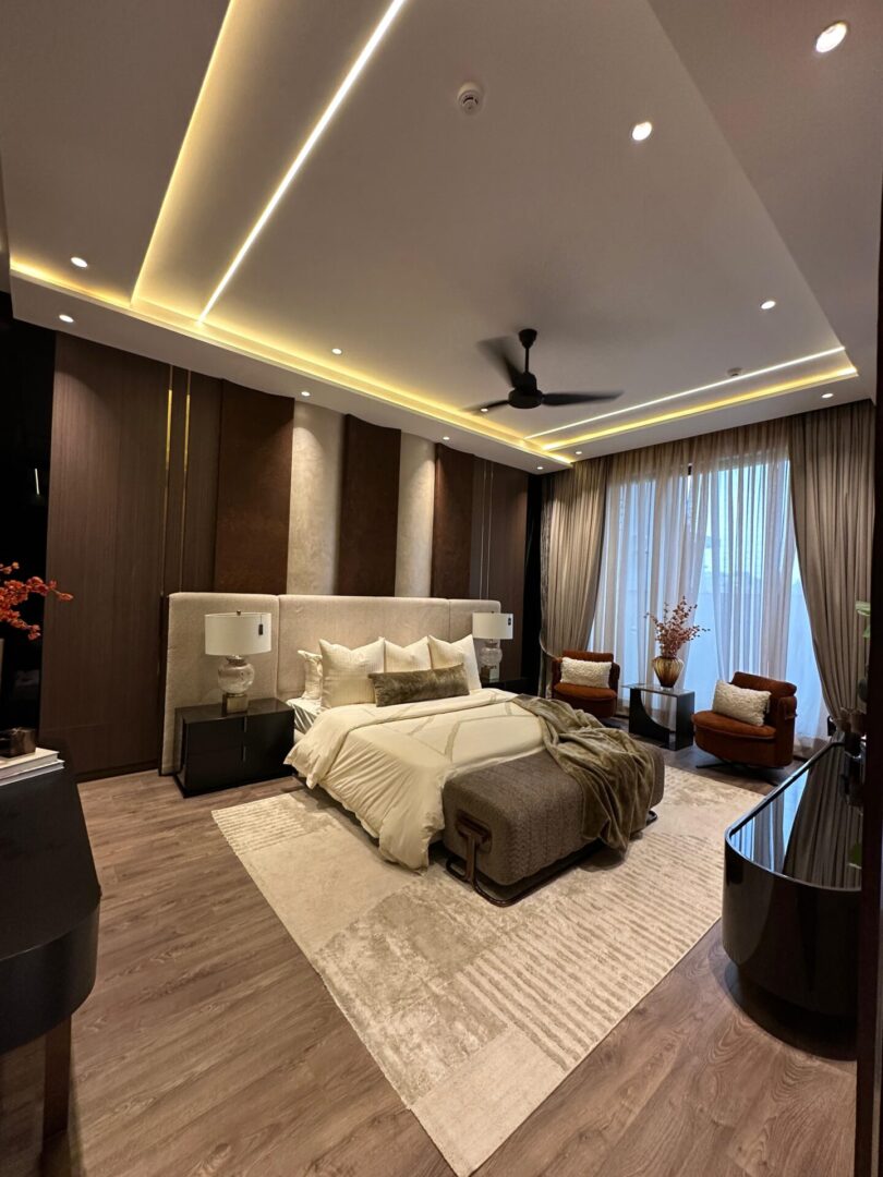 A beautifully presented, 6 bedroom house for sale in Lahore DHA 6. This luxurious property offers generous living space arranged over two floors and benefits from a particularly wide frontage, high ceilings, and excellent proportions, allowing an abundance of natural light throughout. The interiors have been thoughtfully designed with careful attention to detail, combining comfort with contemporary aesthetics. The layout is ideal for both family living and entertaining, comprising 6 bedrooms, 6 bathrooms, 2 TV lounges, multiple lounging areas, 3 kitchens, a powder room, a drawing room, dirty kitchen and balconies. The house has the potential of being split into 2 separate apartments each with it own designated floor and facilities offering great rental potential and passive income or multiple family living making it an ideal investment..